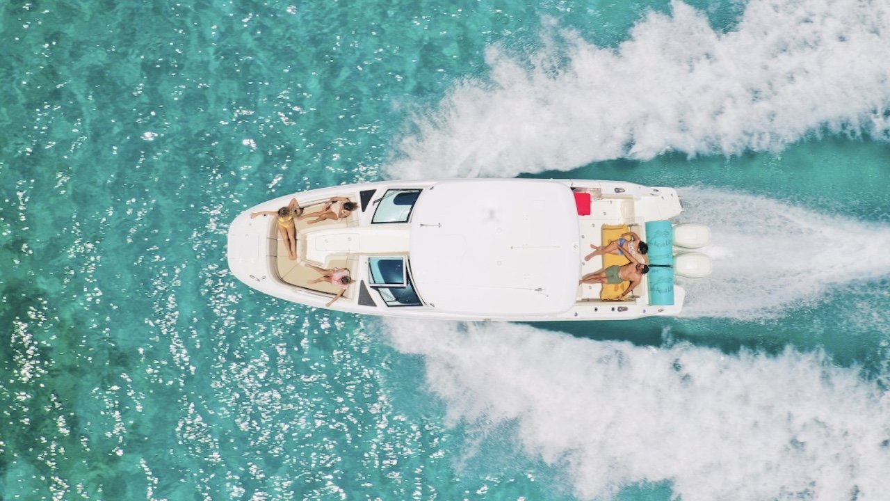 On board, you’ll enjoy open seating areas, shaded comfort, a bathroom with freshwater shower, and plenty of space to move around. Whether you’re snorkeling, swimming, beach hopping, or simply cruising, the VANTAGE delivers a refined and enjoyable private charter experience.